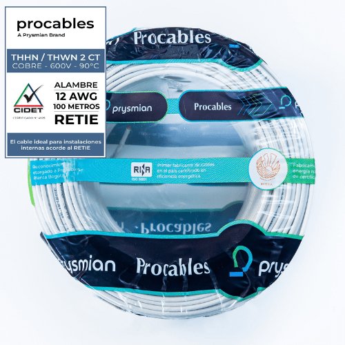 ALAMBRE PRC THHN 12 BLANCO X 100 METROS – PROCABLES 31353080002R