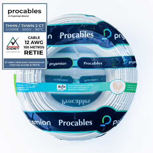 CABLE THHN-2 TC 7H COBRE PROCABLES 12 BLANCO X 100 METROS