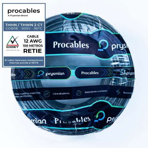 Nuestro Cable THHN-2 TC de cobre con calibre 12 y color Negro de Procables.