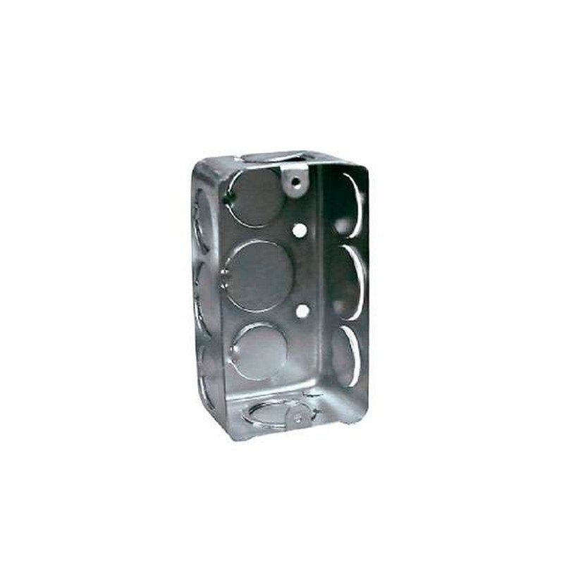 La caja galvanizada 5.800 2×4 rectangular C20 cuenta con caracteristicas de caja lámina cold rolled cal. 20 y un acabado zincado, el tornillo con polo a tierra, pestañas auxiliares en la caja rectangular, sirve para N-Kout para tuberías de ¾ (tres cuartos) y ½ (un medio) ,galvanizado y protegen cada uno de los distintos circuitos.
