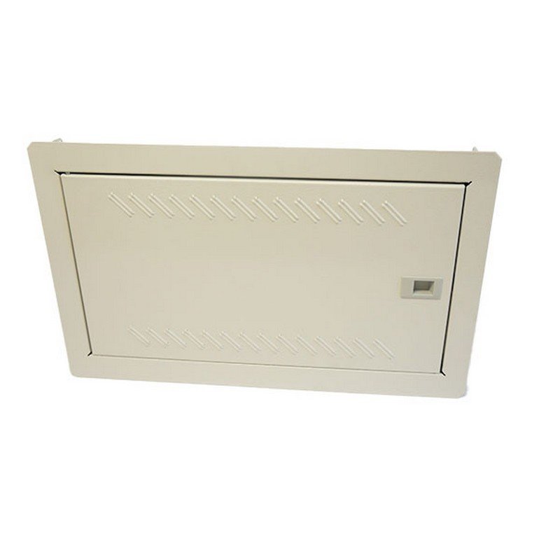 Este producto cuenta con un cuerpo fabricado en lámina galvanizada, que le otorga alta resistencia mecánica, y está diseñado con knockouts en todos sus laterales (superior, inferior, derecho e izquierdo) para facilitar la instalación y el cableado. Incorpora lengüetas con orificios que permiten un amarre seguro a la malla electrosoldada, ofreciendo así flexibilidad y estabilidad en el montaje. Disponible en dos profundidades, este equipo también incluye una bandeja perforada que facilita la organización interna de los elementos. Su diseño con bisagras ocultas y un acabado en pintura electroestática blanca añade un aspecto limpio y profesional.