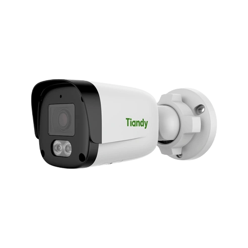 La cámara IP TC-C32QN de 2MP tipo turret ofrece video en alta definición con lente fijo de 2.8mm, visión nocturna IR de 30m, compresión inteligente S+265/H.265, y micrófono integrado.