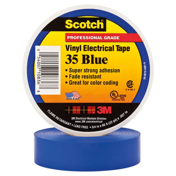La Cinta 3M 35 Profesional en Vinilo Azul x 20 m (Ref. 80610833925) está diseñada para ofrecer máxima durabilidad, adherencia y seguridad en todo tipo de instalaciones eléctricas. Su material de vinilo de primera calidad proporciona un aislamiento confiable frente a la humedad, la abrasión y los cambios de temperatura, manteniendo un rendimiento constante incluso en condiciones exigentes.