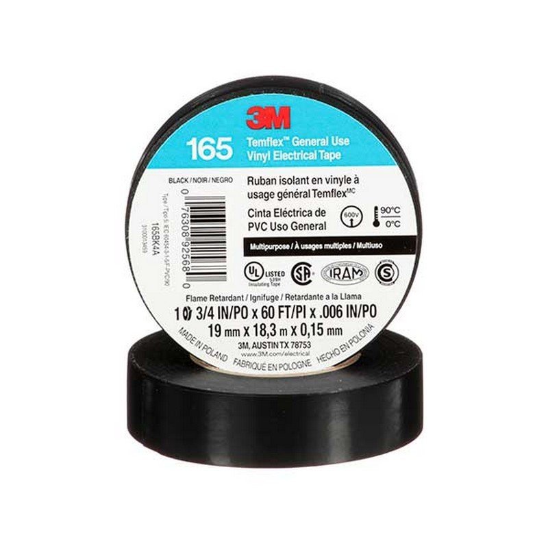 Utilice la Cinta Eléctrica de PVC 3M™ Temflex™ 165 para aislamiento primario de cables y alambres (baja tensión), reparaciones y mazos de cables. Esta cinta de calidad profesional proporciona un rendimiento mejorado y es adecuada para uso en interiores y exteriores.