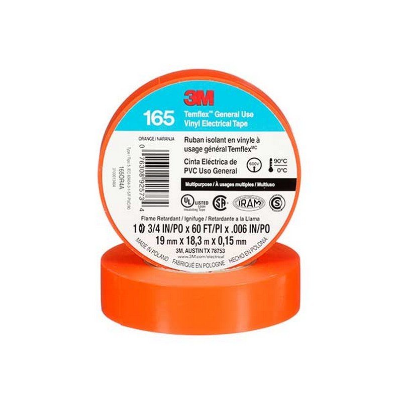 La Cinta Eléctrica de PVC 3M™ Temflex™ 165 es una cinta aislante de vinilo multiuso de buena calidad. Tiene gran resistencia a la humedad y a las condiciones climáticas variables. Es una cinta de cloruro de polivinilo (PVC) ignífuga y adaptable. La cinta 3M Temflex 165 proporciona una gran protección mecánica con un volumen mínimo. Es una cinta aislante certificada por CSA y listada por UL. No se utilizan solventes en el proceso de fabricación.