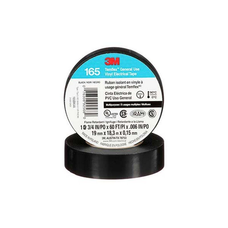 La Cinta Eléctrica de PVC 3M™ Temflex™ 165 es una cinta aislante de vinilo multiuso de buena calidad. Tiene gran resistencia a la humedad y a las condiciones climáticas variables. Es una cinta de cloruro de polivinilo (PVC) ignífuga y adaptable. La cinta 3M Temflex 165 proporciona una gran protección mecánica con un volumen mínimo. Es una cinta aislante certificada por CSA y listada por UL. No se utilizan solventes en el proceso de fabricación.