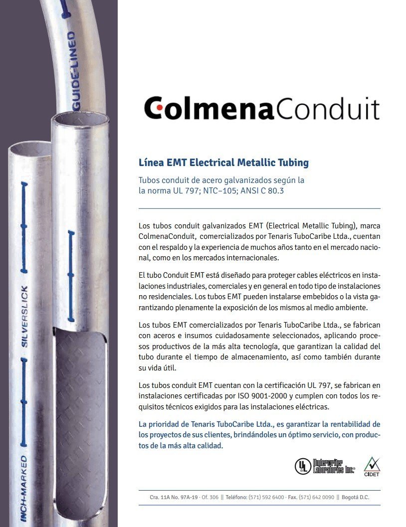 Ficha Técnica 2023 Colmena Conduit Línea Tubos Galvanizados EMT