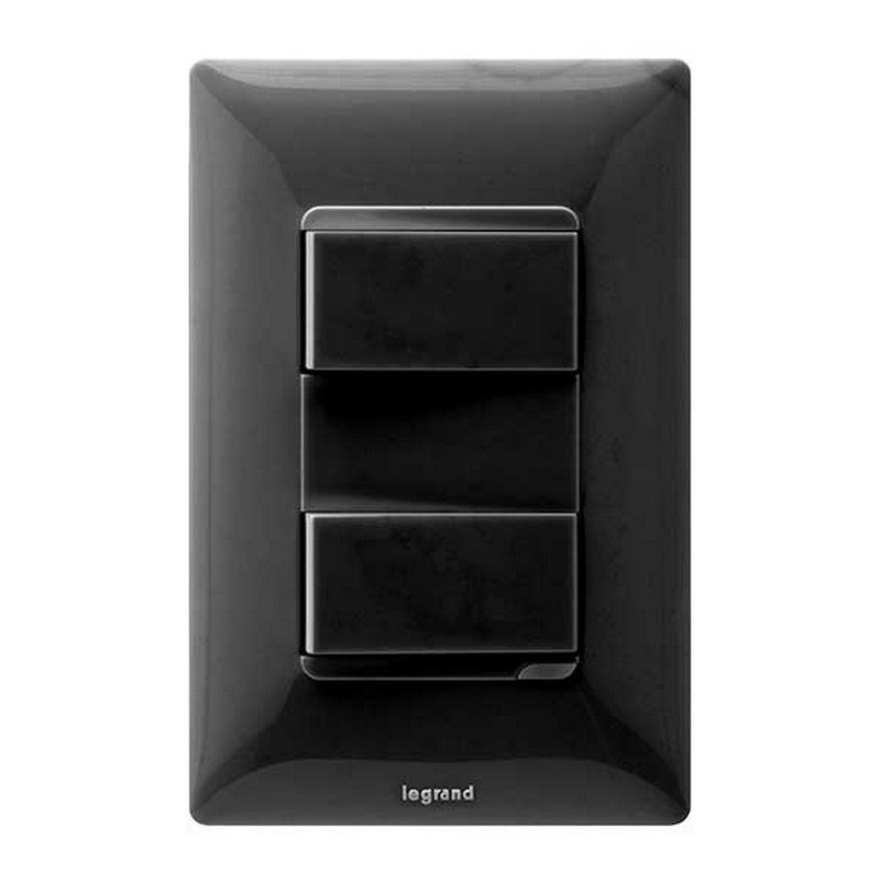 Interruptor conmutable doble de la línea Futura, en color negro (NG). Permite el control de dos circuitos eléctricos desde dos puntos diferentes, ideal para espacios con múltiples puntos de acceso o iluminación.