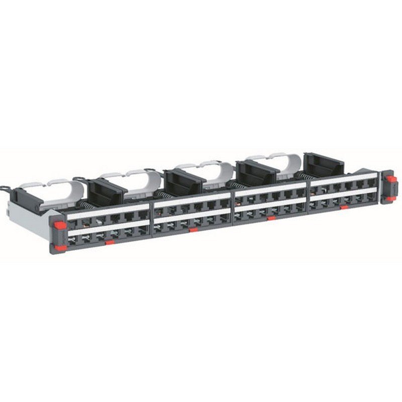 El patch panel 5E 32P 2UR, cuentan con la tecnología patentada soluclip que permite que sean instalados rápidamente en un gabinete ya que no requieren la instalación de tornillos o tuercas adicionales, simplemente se ubican en el gabinete y el patch panel se instala a presión sobre los rieles, tambien permiten un acceso rápido de forma individual a cada uno de los puertos.