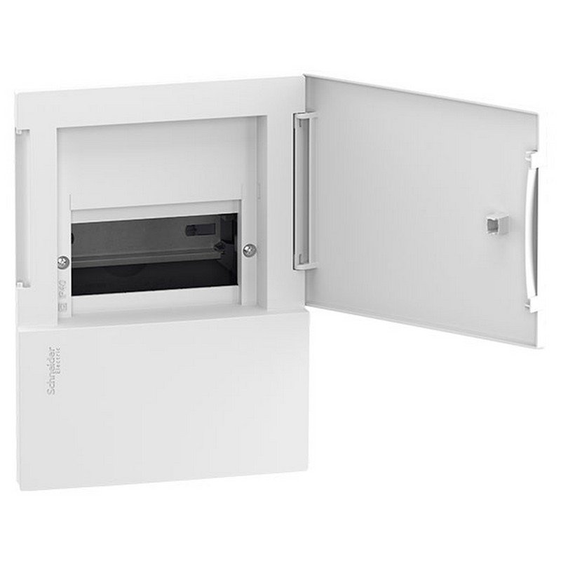 TABLERO MINIPRAG 63A 400V 1F 6C – SCHNEIDER Este gabinete Resi9 MP es un gabinete modular empotrado. Este gabinete se compone de 1 fila de 6 módulos de 18mm. Puede alojar todo tipo de tableros modulares. El grado de protección IP es IP40. Está provista de una puerta translúcida. El color de la cara frontal es blanco (RAL 9003).
