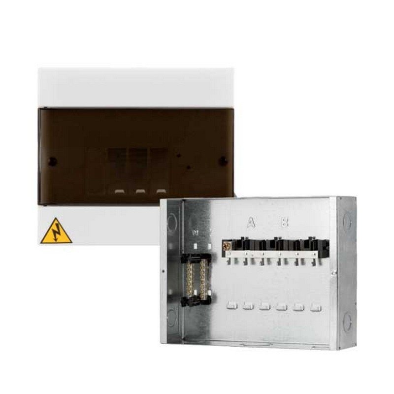 Tablero mon-ench 6 ct CU/AL 75 127V Barra de Tierra Fabricada en aluminio estañado Barra de Neutro Fabricado en aluminio estañado Aislante Regletas plásticas fabricadas en policarbonato Barraje Troquelado y fabricado en aluminio estañado Caja metálica fabricada en lamina galvanizada Espesor lamina Calibre 20 (0,90 mm) Pintura Electrostática horneable Color Blanco libre de TGIC Tapa Tipo Metálica fabricada en lamina cold rolled Accesorios Tornillo de Fijación Autoroscante, arandela estriada para contacto eléctrico.