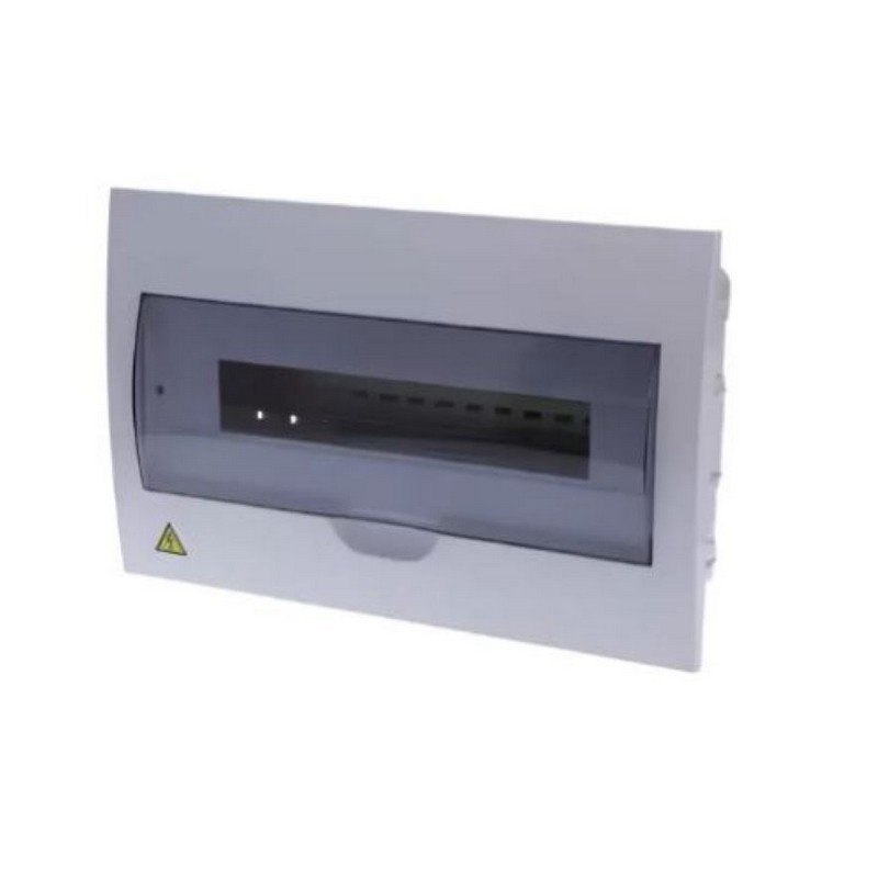 Tablero de incrustar tipo Riel para 24 circuitos trifasico en material plastico con visor y barrajes