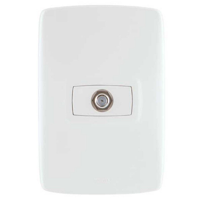 La Toma Arquea Coaxial TV en color blanco, modelo Legrand AQ-060-75B, está diseñada para conexiones de televisión mediante cables coaxiales. Ofrece un punto de enlace eficiente para señales de audio y video, compatible con sistemas estándar de televisión.
