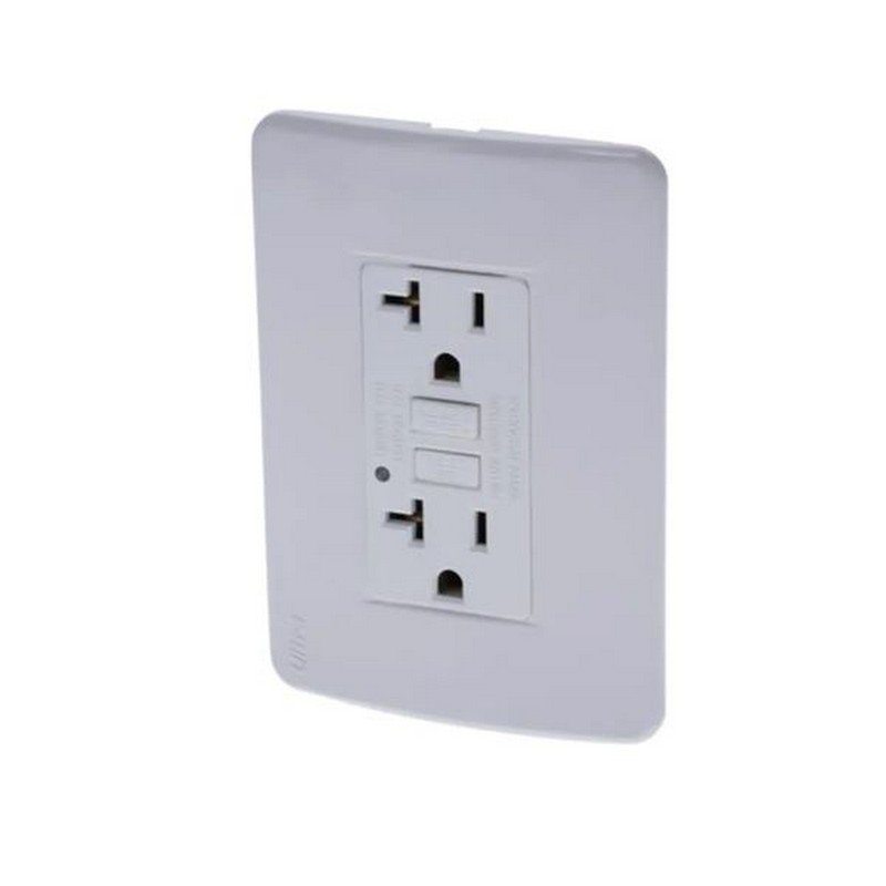 Tomacorriente doble GFCI, ideal para instalaciones eléctricas de baja tensión, para usos en redes domiciliarias, comerciales o institucionales.